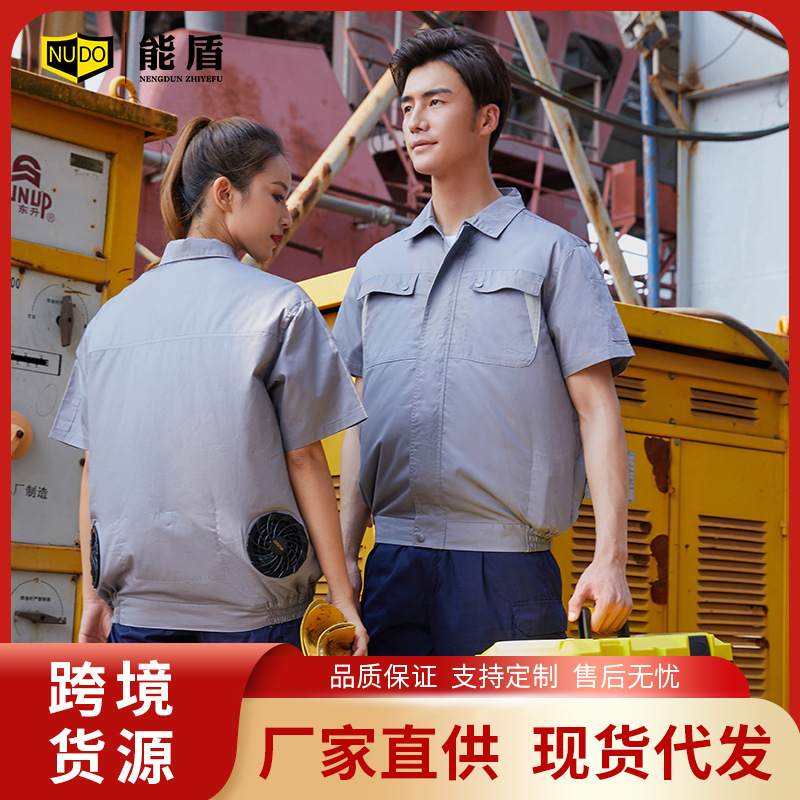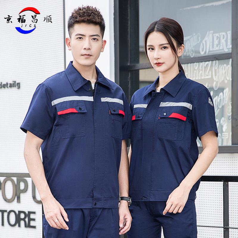 純綿夏服半袖作業服セット男性用薄手通気性労働保険服電気工場工場服工衣卸売り