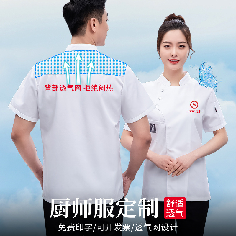 シェフオーバーオール半袖メンズ薄型通気性ホテル食堂女性ベーキングレストランキッチン作業服カスタムクロスボーダー