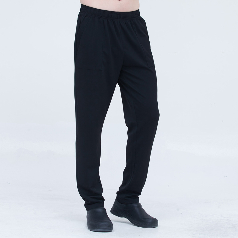 ホテルのレストランの料理人の作業服のズボンの男性の従業員の清掃員の作業ズボンの女性の弾力性の黒色のズボン