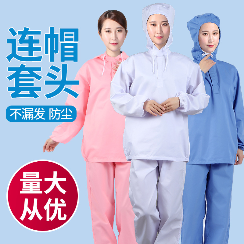 食品工場作業服 プルオーバーフード付きスーツ メンズ 春秋 長袖 生産工場保護服 加工工場服 レディース