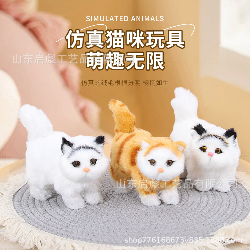 真兎皮シミュレーション猫人形玩具動物模型置物工芸品記念品子供誕生日プレゼント