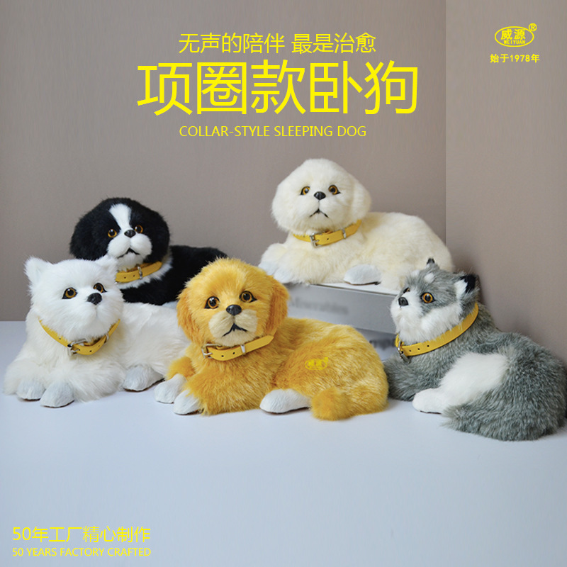 模擬動物人形、手工芸品、家の車の装飾、クリエイティブなギフト人形、卸売首輪、横たわる犬