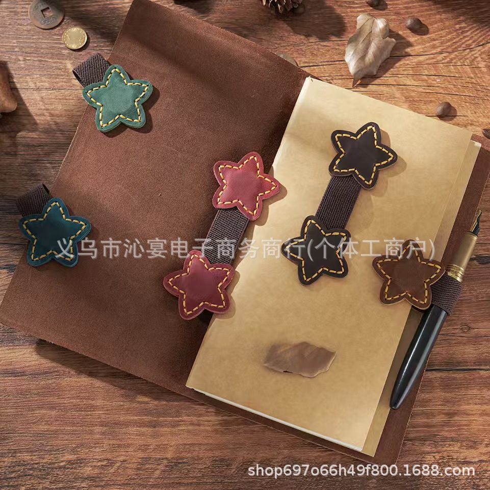 牛革ブックマーク両面磁気バックルマグネットクリップ手縫い五つ星牛革ハンドブックかわいいクリエイティブ装飾