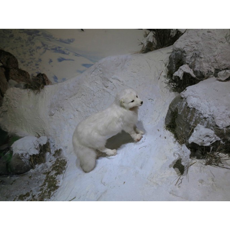 白キツネ標本、キツネモデル、模擬動物、毛皮工芸品、動物標本加工・修復