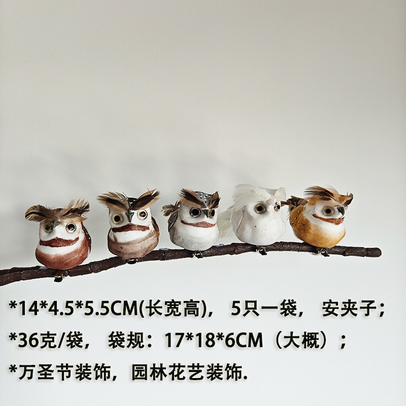5 パックフォームフクロウシミュレーション鳥の羽鳥ハロウィンガーランド庭の装飾長さ 14 センチメートル