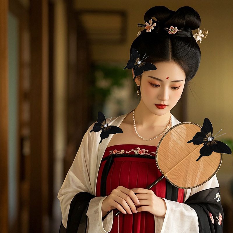 ブラックパラダイスカイプバタフライライト高級妖精羽蝶シミュレーション蝶フラワーアート古代スタイルのヘアピン花嫁のヘアアクセサリー