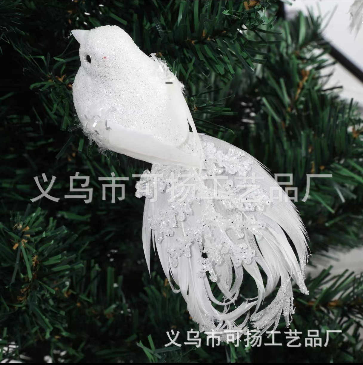 仿真羽毛挂件和平鸽羽毛小鸟婚礼摄影道具跨境货源假鸟圣诞产品