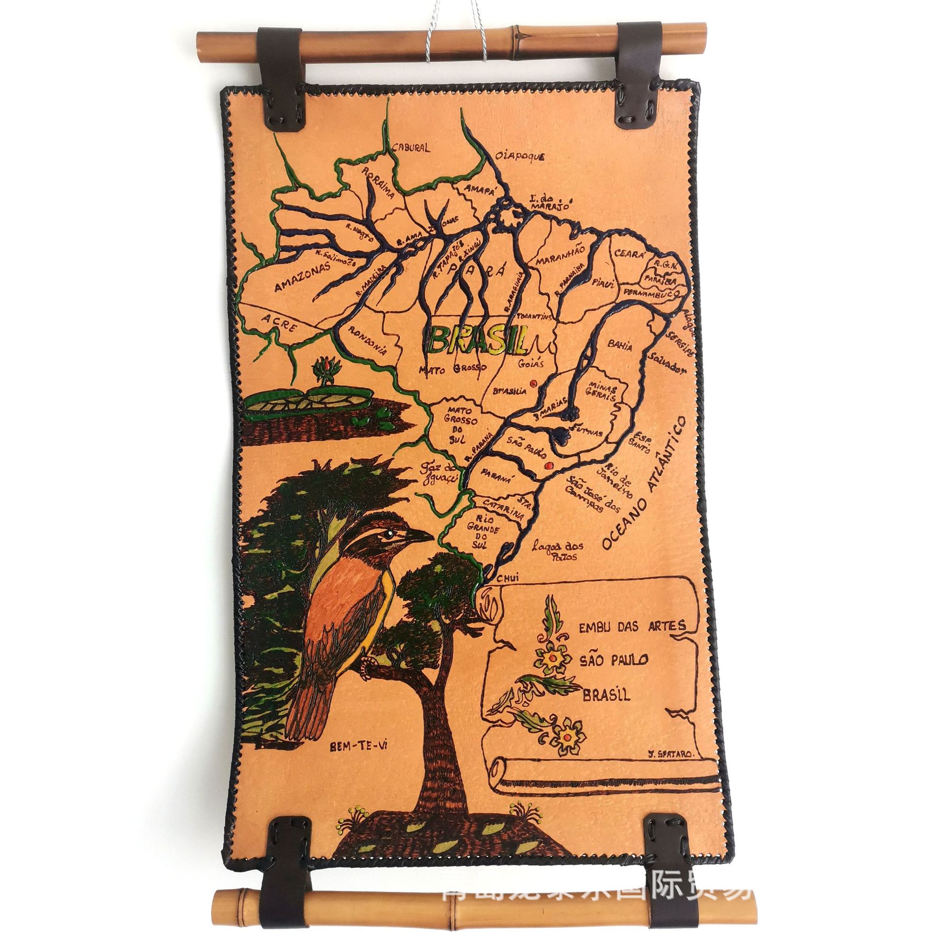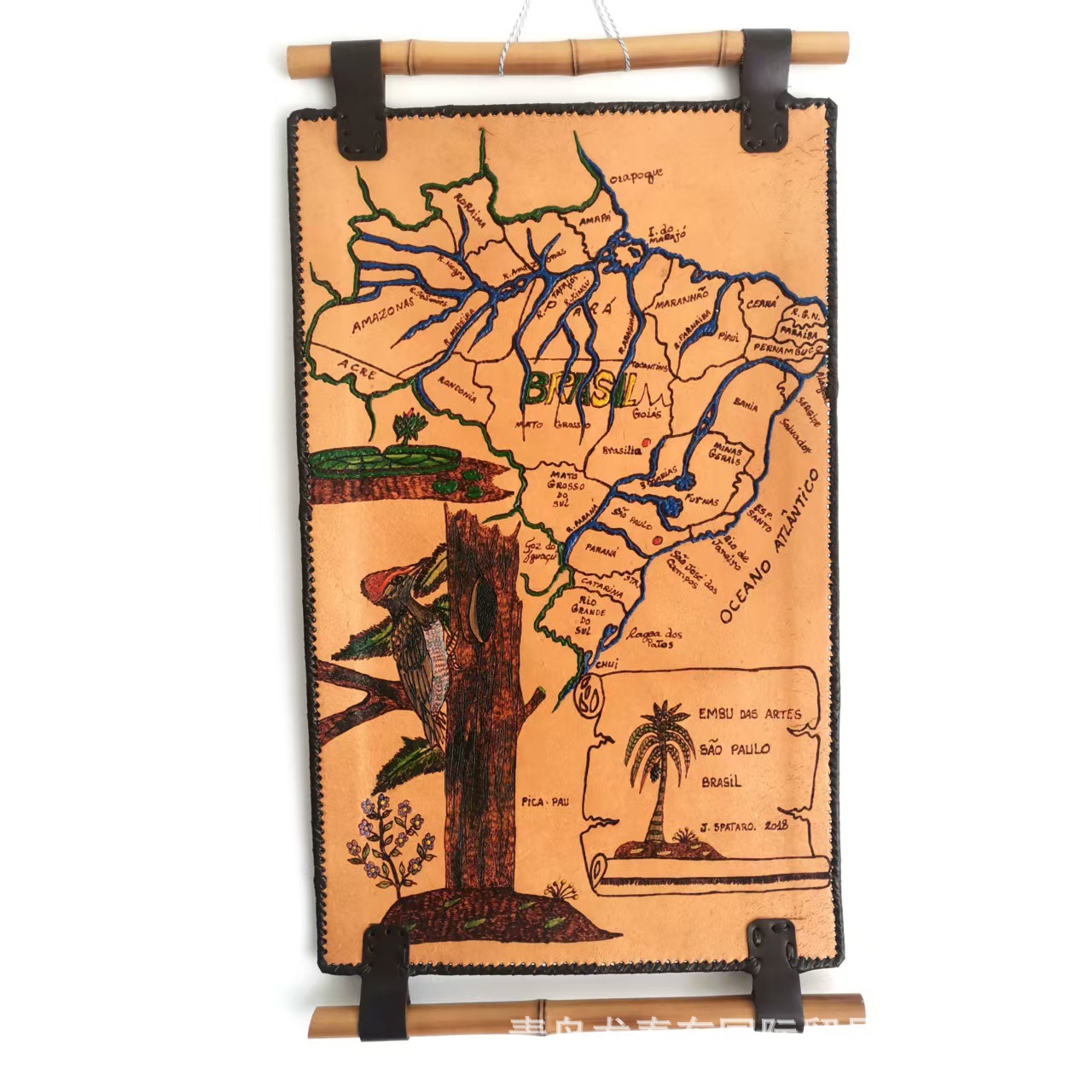 ブラジル手作り革地図装飾絵画南米スタイルアート吊り絵画ホームオフィス装飾吊り絵画