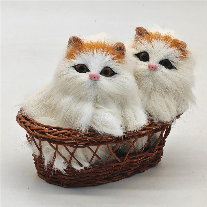 工場価格スポット卸売バスケット付き模擬猫子猫子供ガールフレンドギフト装飾品子供の写真撮影方法
