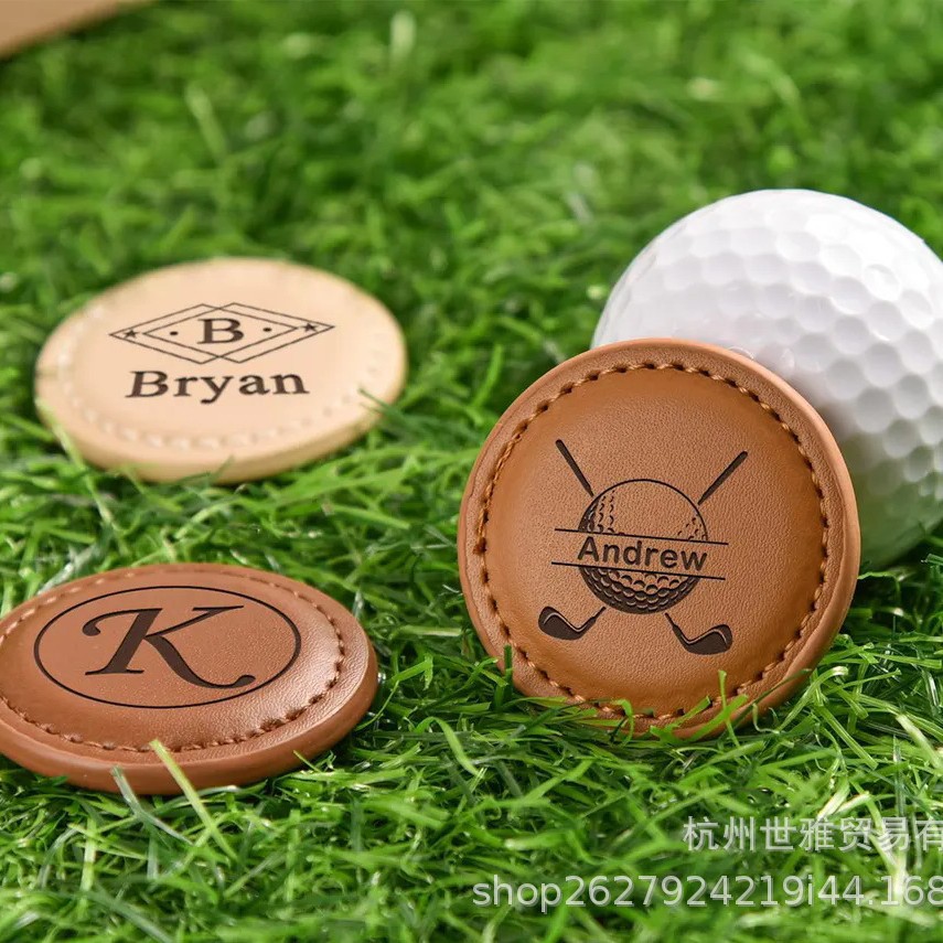 クロスボーダーカスタマイズされたゴルフギフトボール磁気ボールマーカーラウンドPUレザーゴルフボールマーカー強力な磁気方向マーカー