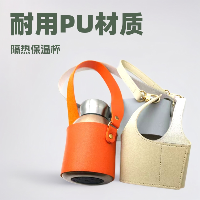 国境を越えた現物の手にPU革カップセットを持ってアウトドア旅行保温カップコーヒーミルクティーカップセット吊り式断熱カップセット