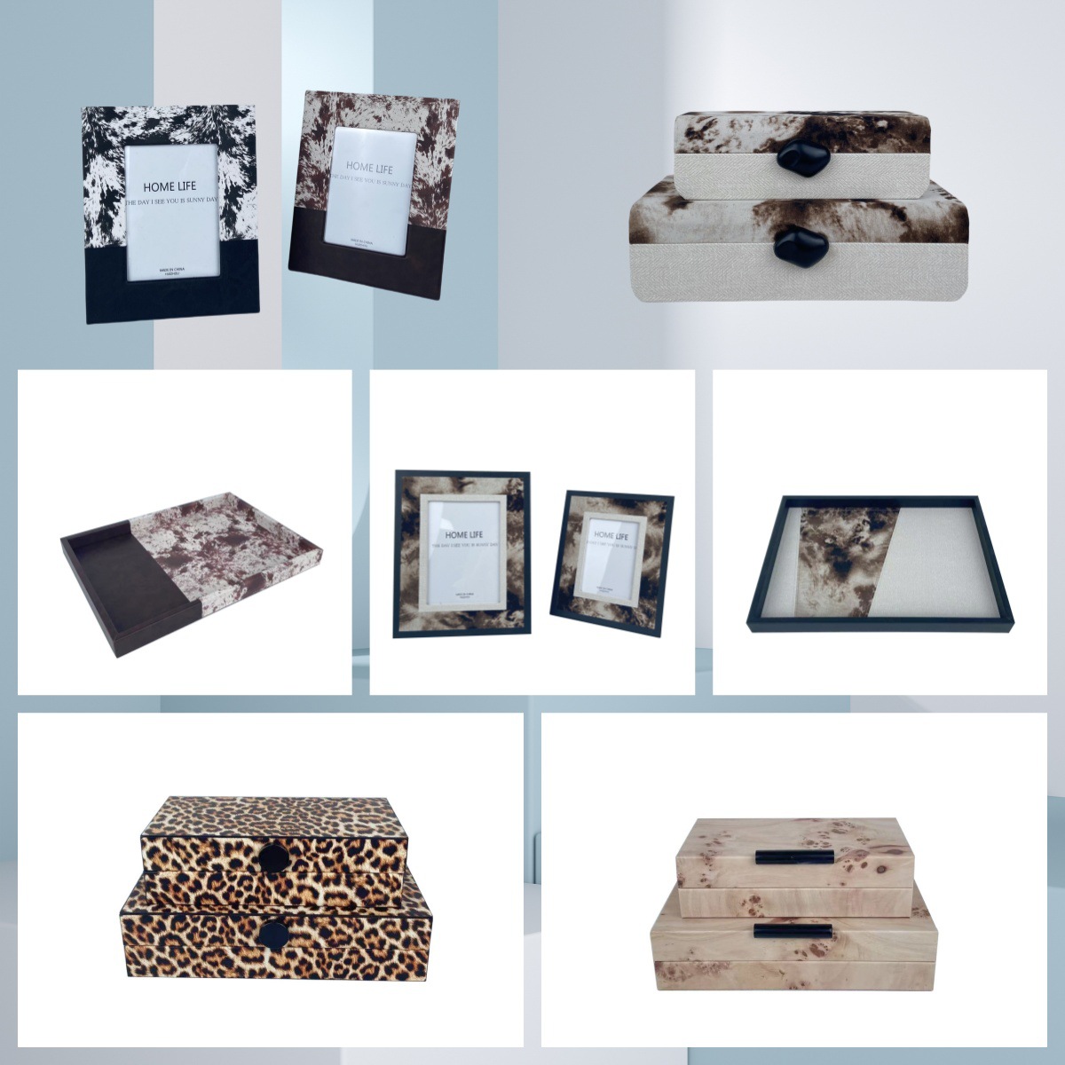 高級創意のカラフルな革のサンプルルームの収納ケースのサンプルルームのフードの間に飾られた装飾品がシンプルに整理されています。