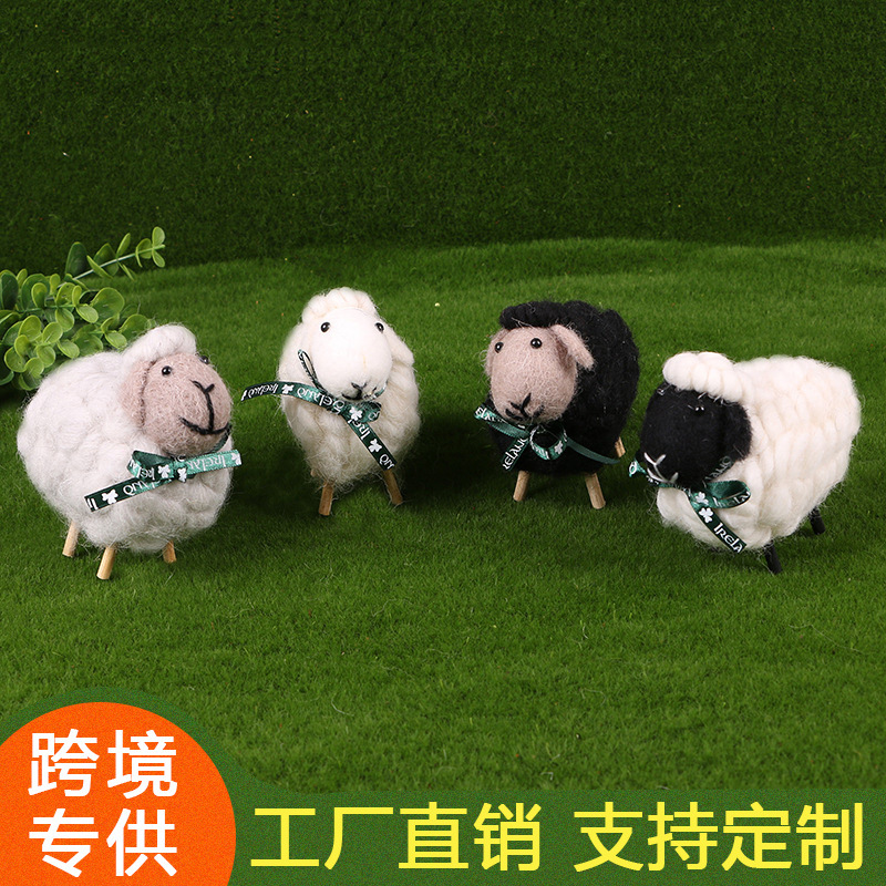手作り羊毛フェルト家庭用家具、創造的な写真小道具、工芸品、かわいい小さな黒い羊の装飾品、工場直販