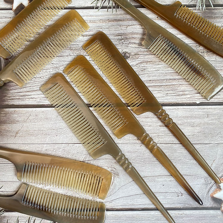 天然牛角コームハンドルコームムーンコームメーカー卸売マッサージコーム理髪