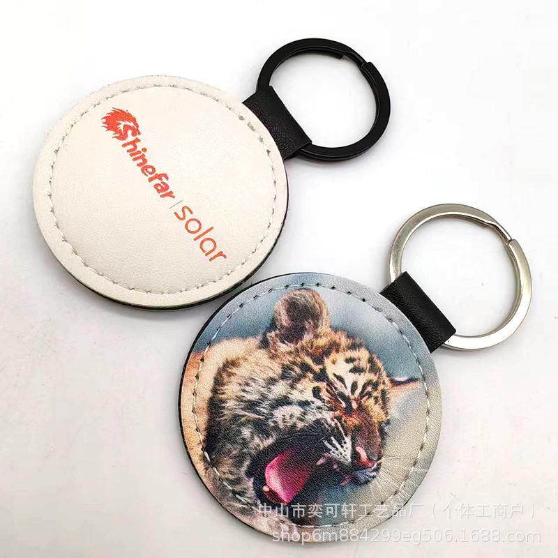 クリエイティブな丸型キーホルダー PUレザーキーホルダー 蛇皮柄 片面縁取り転写キーホルダー ライトラグジュアリー ハンドメイド