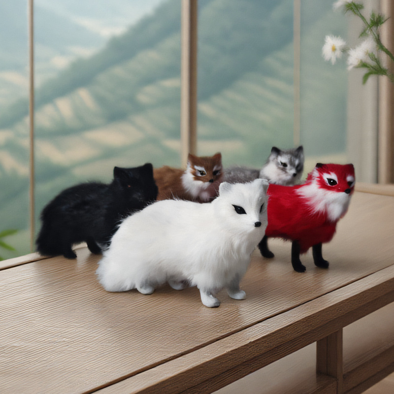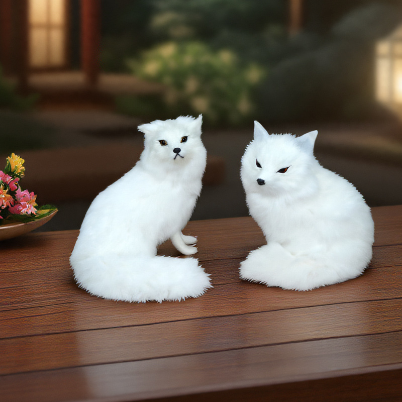 キツネの真身の置物をシミュレーションして、小さな白いキツネの小さな置物を供えます。