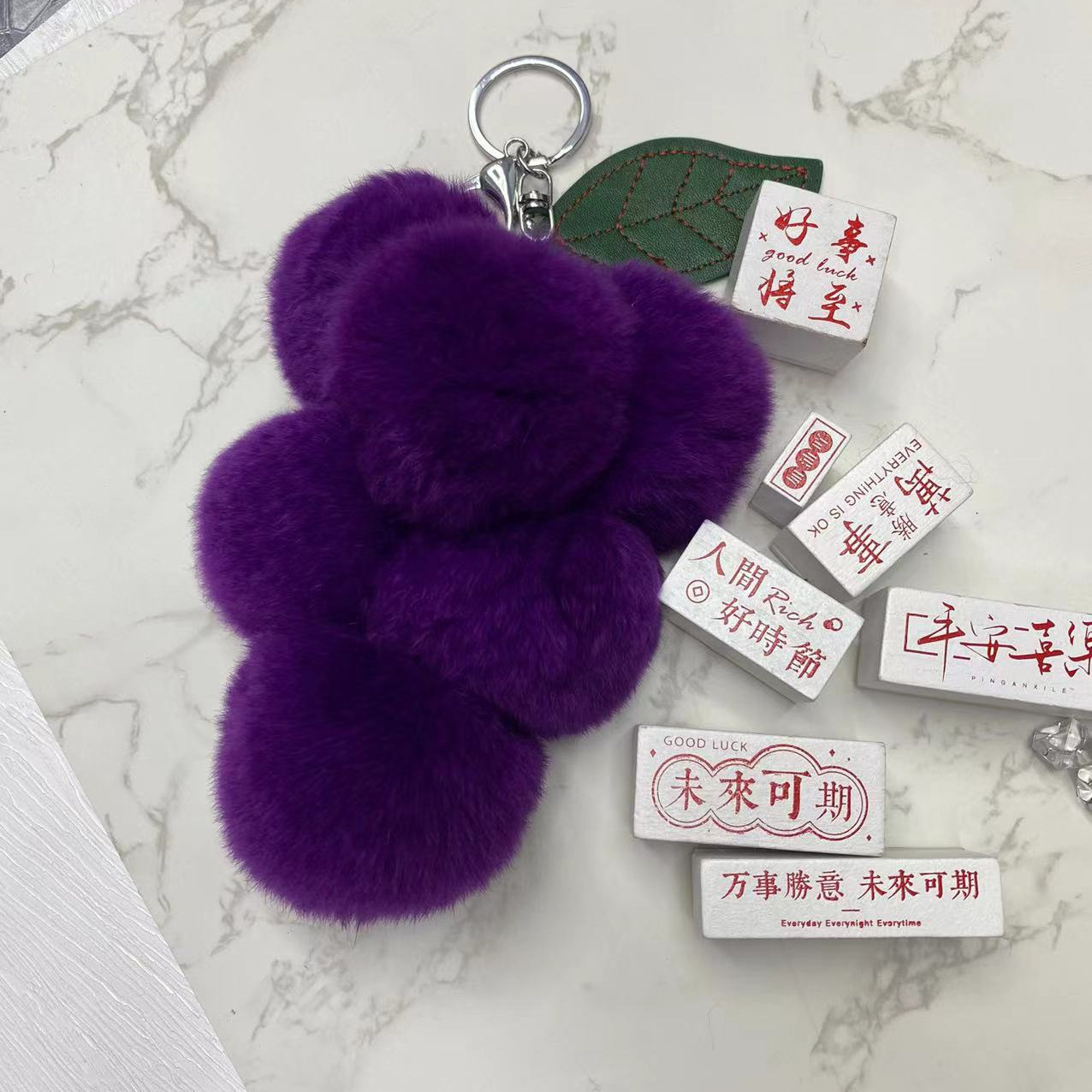 本物のウサギの毛皮の小さいさくらんぼの自動車のキーホルダーのペンダントのかわいい毛のボールのぬいぐるみのかばんの掛け飾り