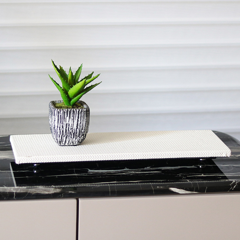 軽い豪華な長方形の編み物の革のトレーの置物の見本板の間の売り場のリビングのデスクトップの収納盤の装飾品