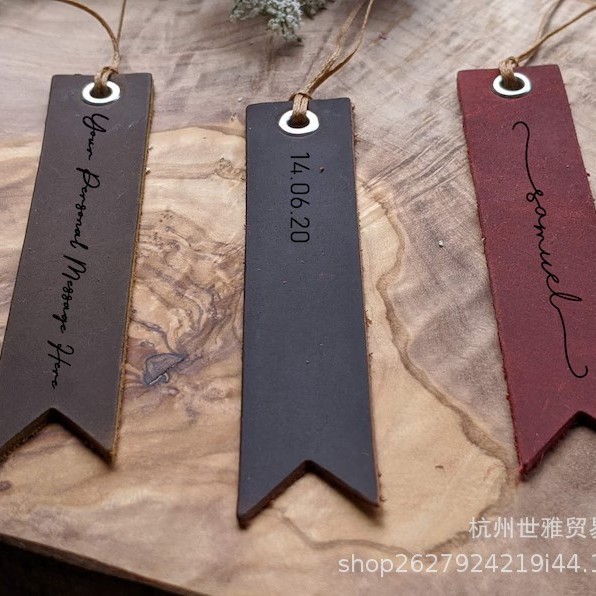 ETSYクロスボーダー革レトロシンプル風レーザー彫刻しおり模造本革pu読書文房具しおりストラップ