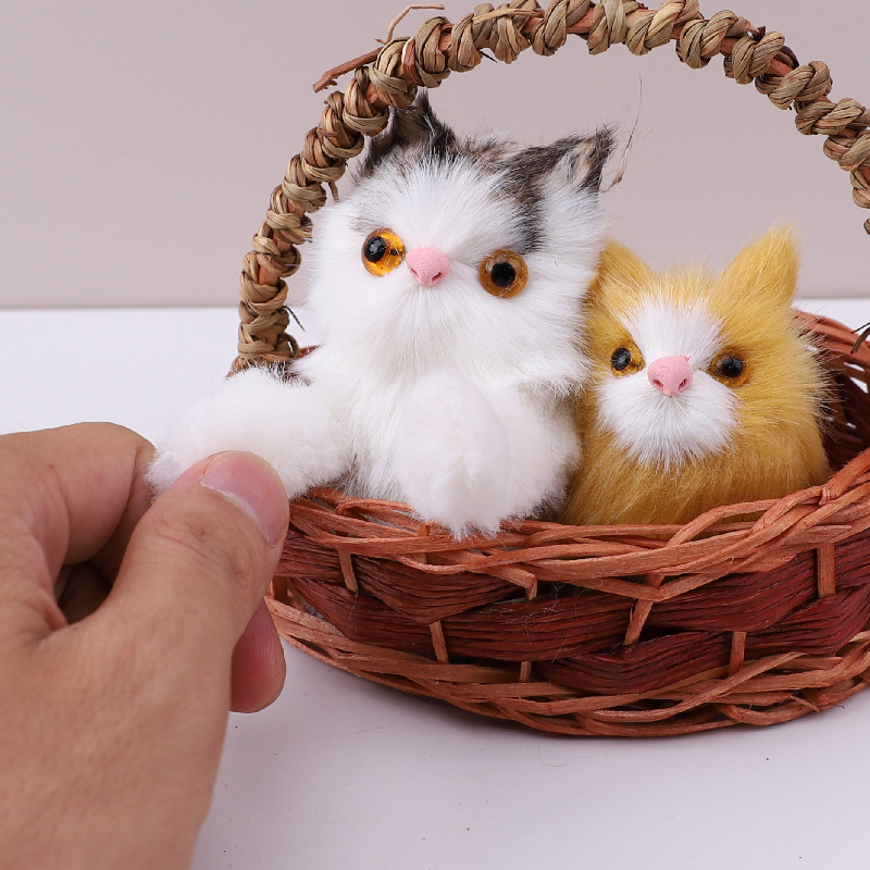 猫の人形の偽物のウサギのぬいぐるみの装飾品のミニ小動物の模型は子供の誕生日プレゼントと呼ばれます。