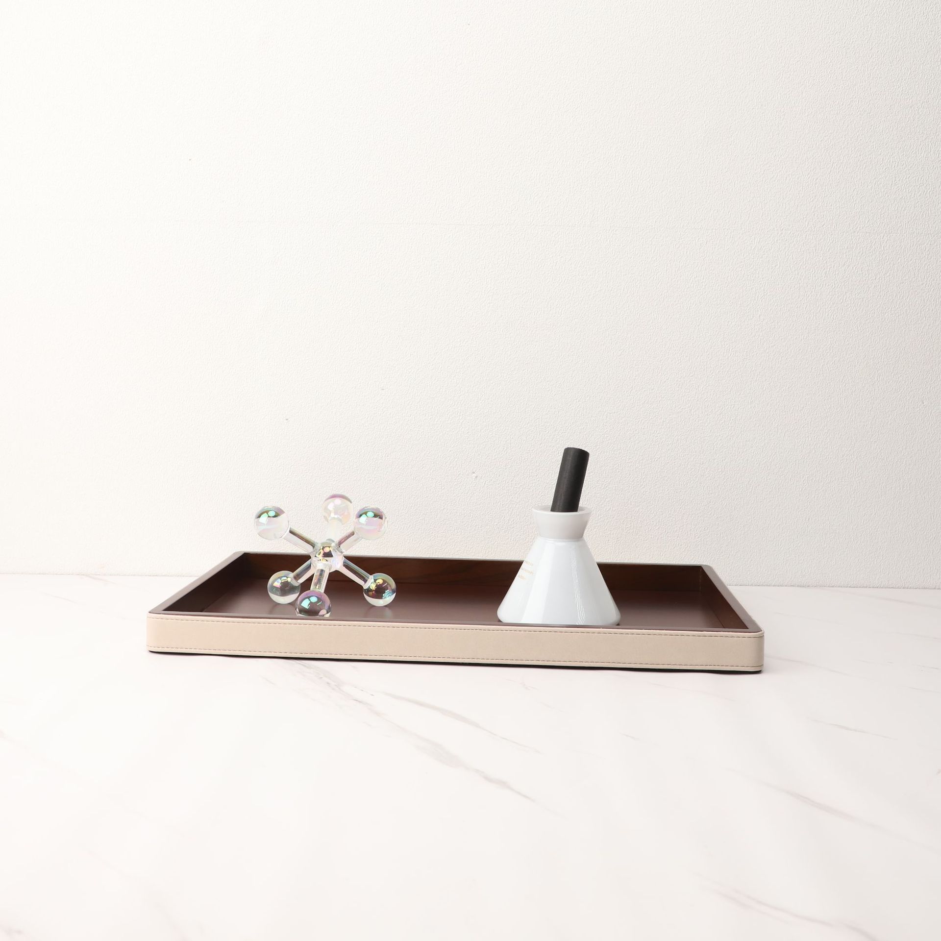 現代の軽豪華な幾何学の収納革のトレーの置物のサンプルプレートの部屋のホテルのサンプルプレートの間の客間の家庭の柔らかい装飾品