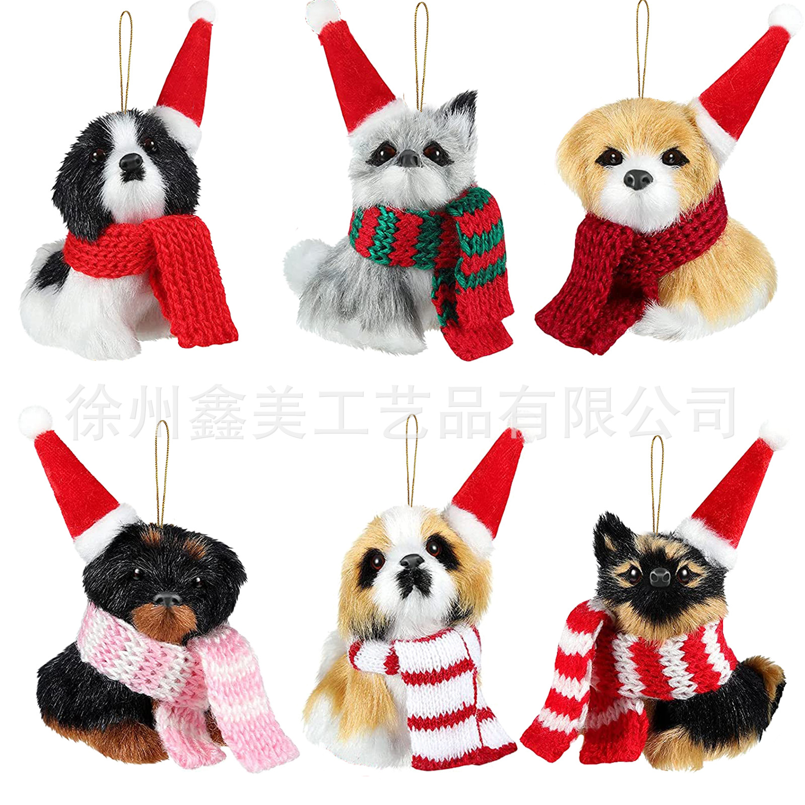 新しいクリスマス帽子のマフラーカバー6毛のシミュレーション犬の組み合わせのペンダントの祝日の贈り物の車のペンダントのクリスマスの装飾