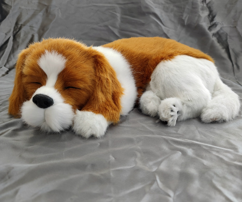 大きいサイズの寝犬は犬のハスキー動物の模型の自動車の家のテーブルの置物の毛皮の工芸の大きいサイズの寝犬を模倣します。