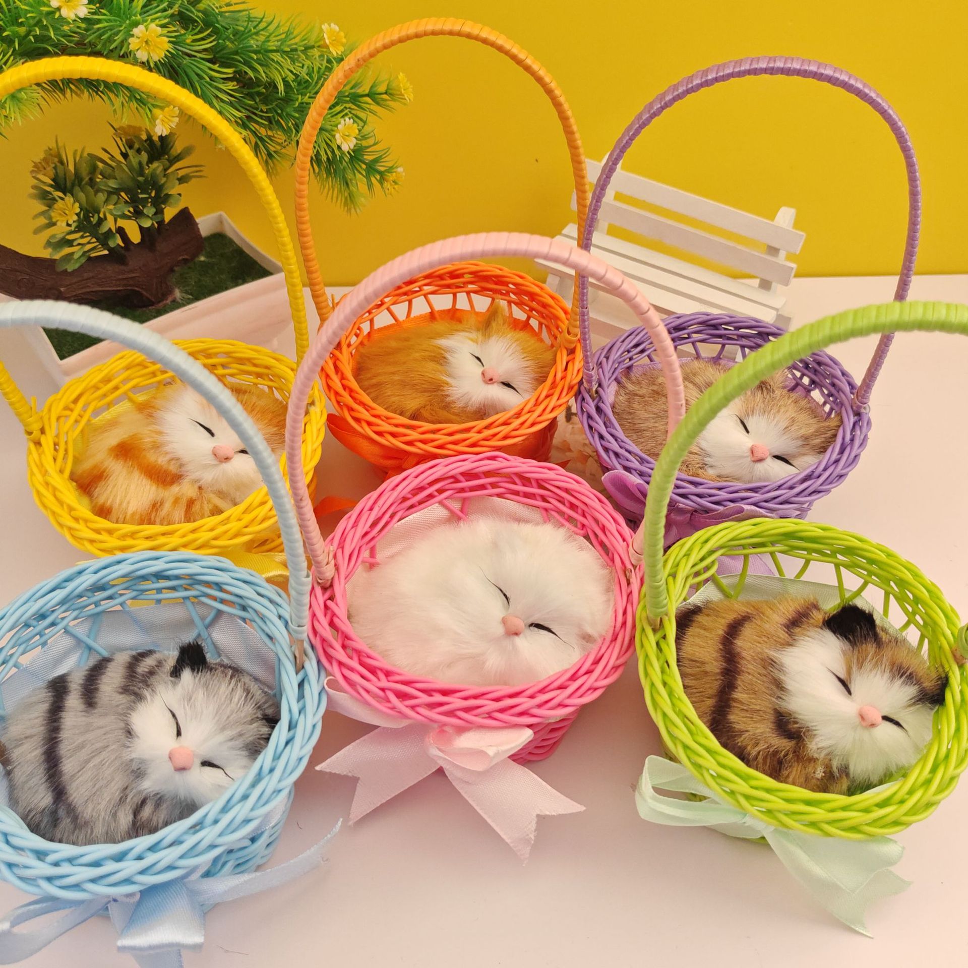 蝶結びのかごの猫は毛に似せて寝ます。猫は観光地区に露店を出して集まります。子供のおもちゃです。