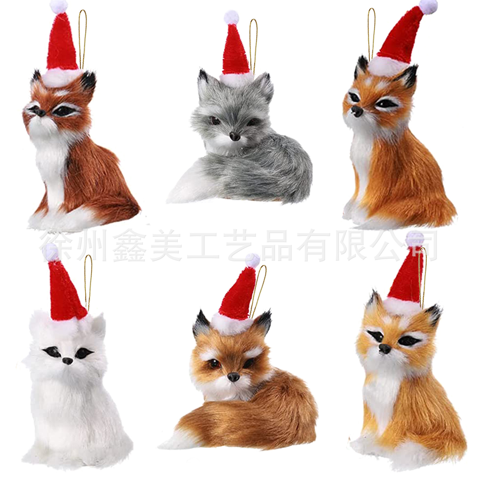 模造毛皮動物ストラップぬいぐるみシミュレーションミニクリスマス帽子キツネペンダント祝日プレゼントクリスマス装飾