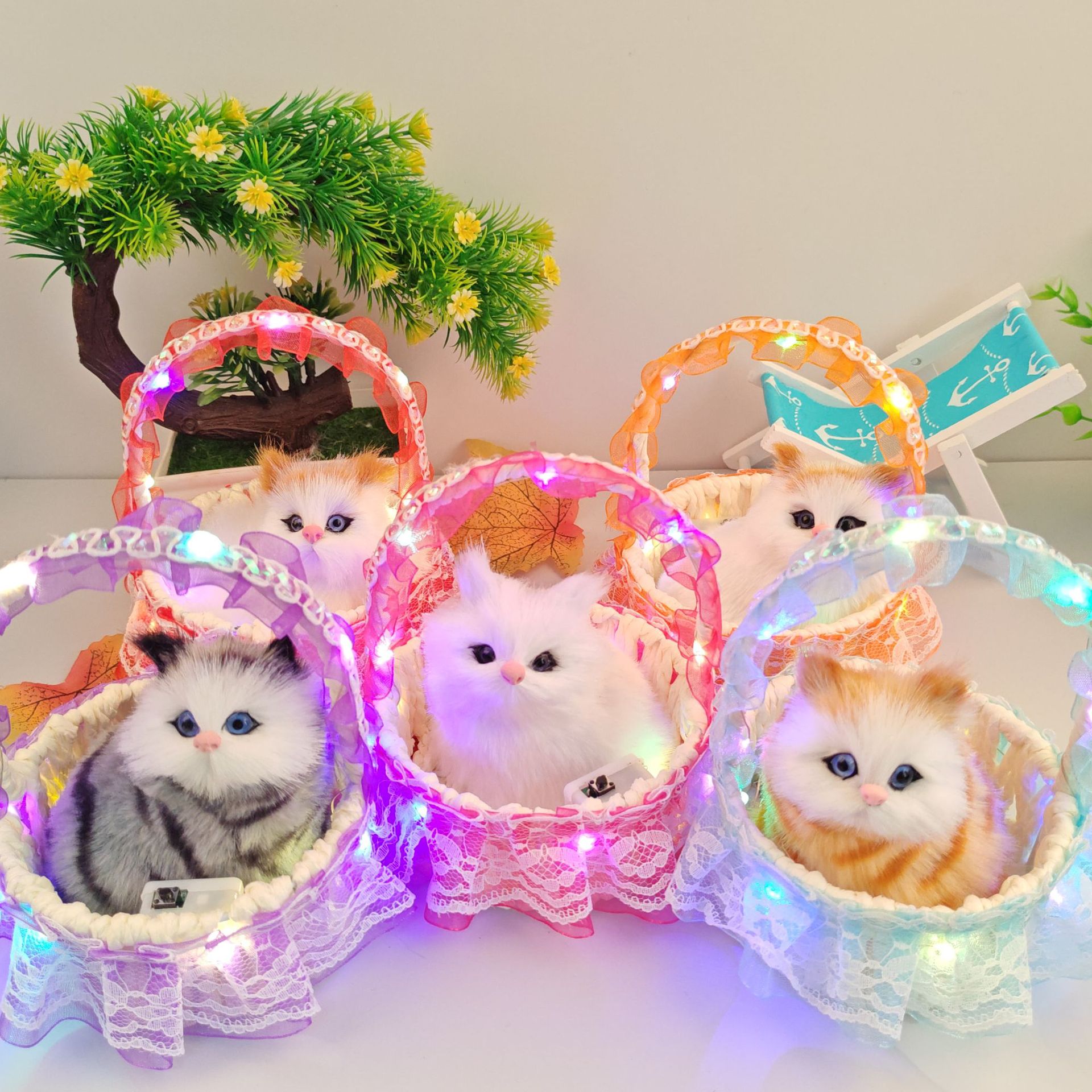 猫のしゃがみ猫が卸売りのバスケットを飾って、イルミネーションをつけて、観光地区でおもちゃを売ることができます