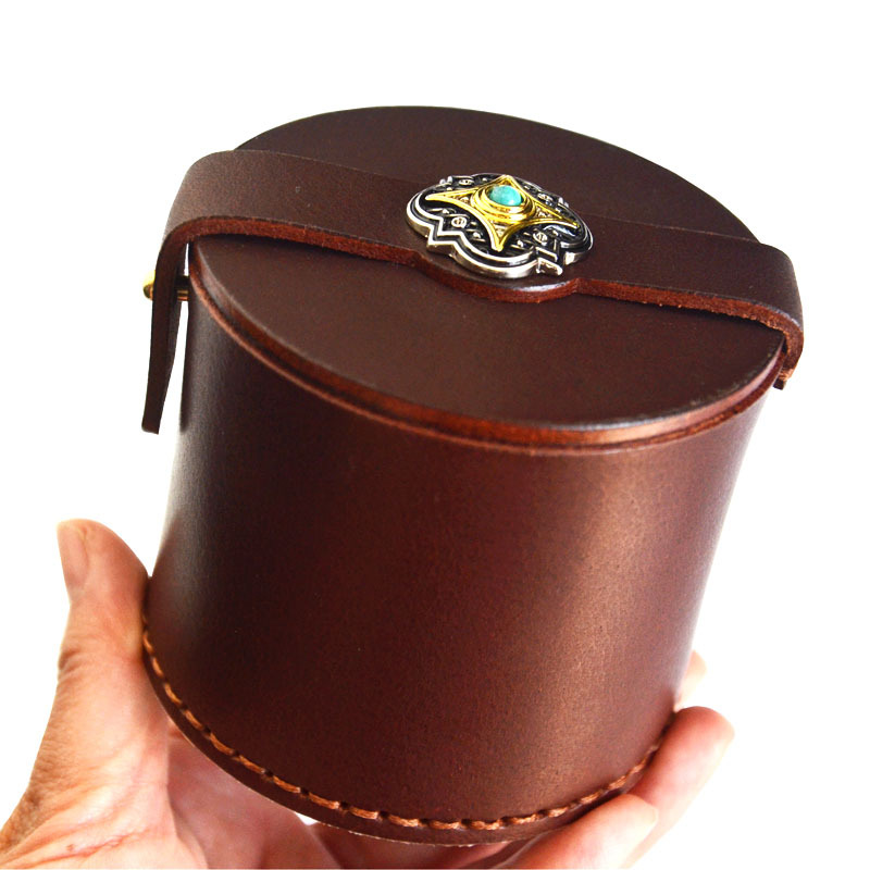 文游収納缶植なめ牛皮手作り縫い目皮缶は、アクセサリーケースの高級ギフトボックスを作って卸売りします