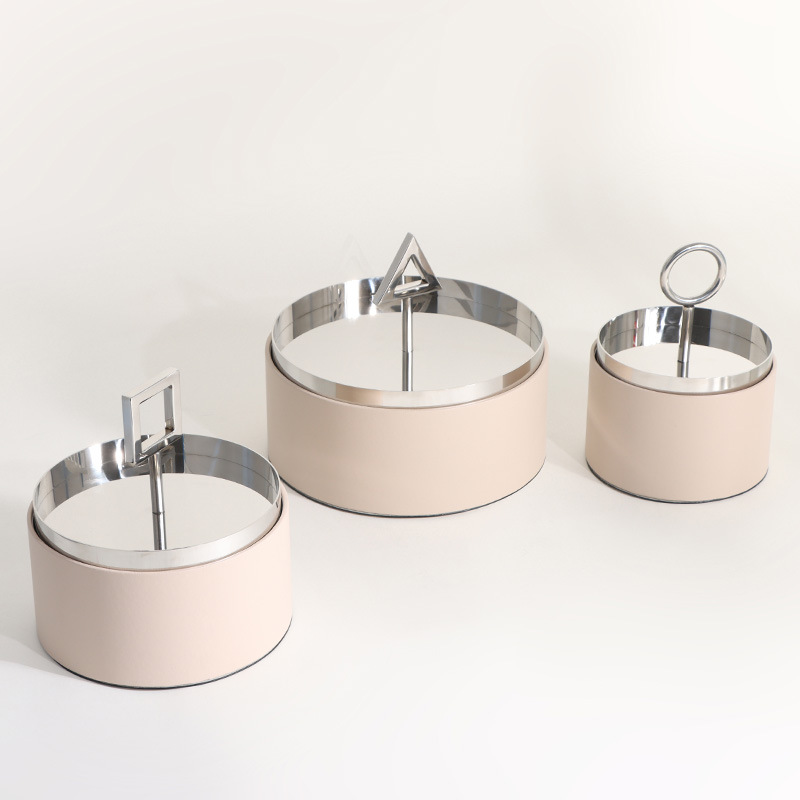 現代の軽い豪華な家庭のベージュ色の超繊維皮革多機能の貯蔵箱のデスクトップの間食のキャンディーの収納箱の置物