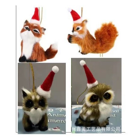 メーカーは卸売りのぬいぐるみのシミュレーション動物のクリスマスの帽子のキツネのリスのアライグマのフクロウの贈り物の装飾を提供します。