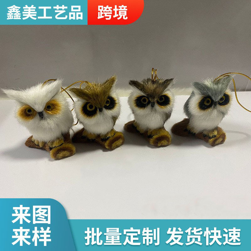 仿真猫头鹰模型装饰摆件猫头鹰公仔动物皮毛工艺品毛绒仿真挂件