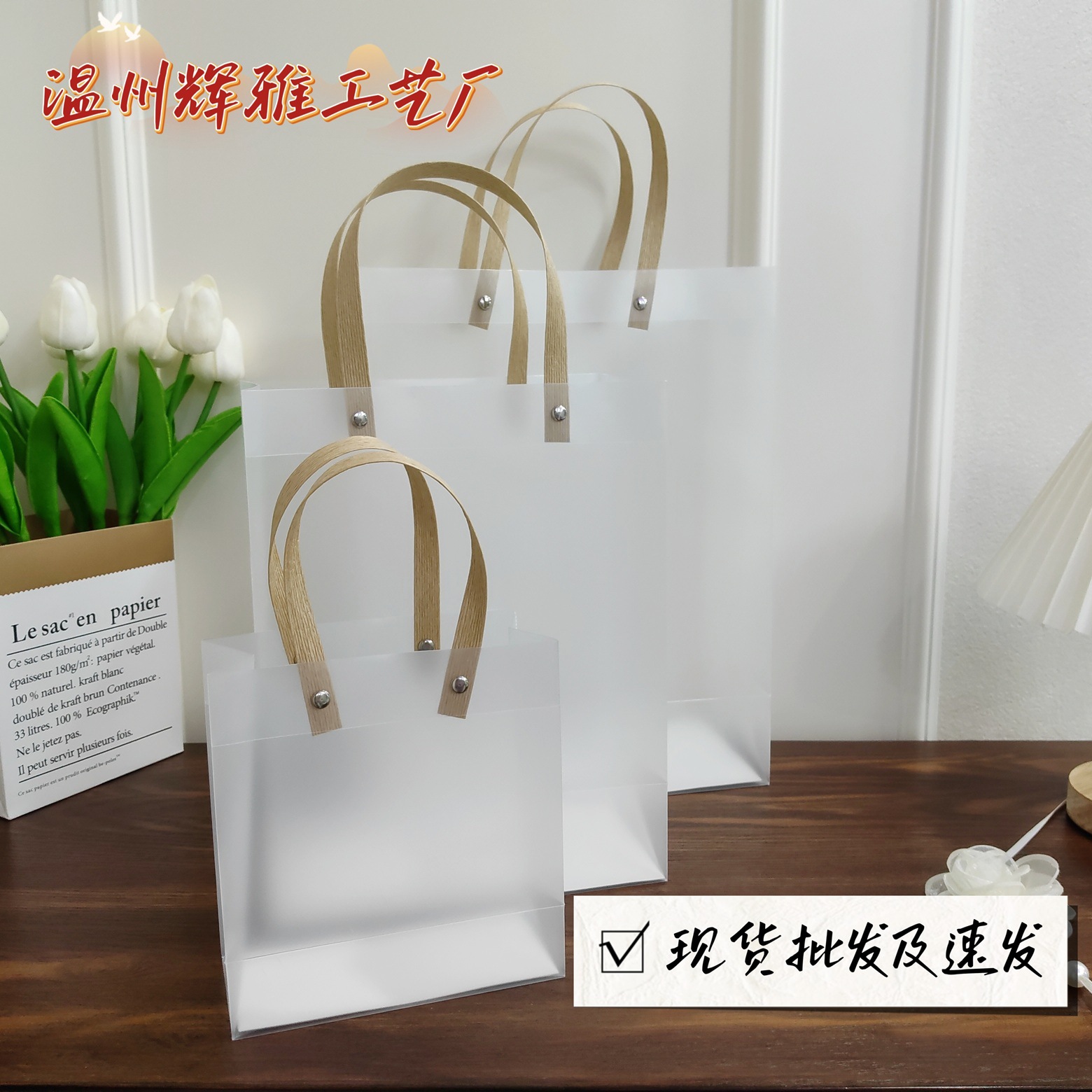 PPプラスチックつや消し透明手提げ袋現物卸売りカラー手提げ袋PVCプラスチックお土産包装袋