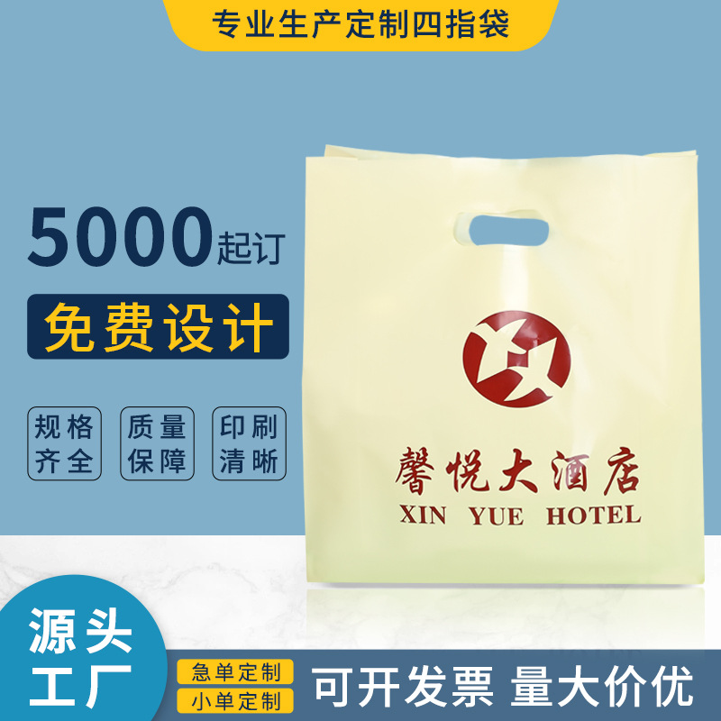 厚みのある4本指バッグ、平口ハンドギフト衣料品ビニール袋、パンチングポータブルグラフィックバッグ、カスタムロゴ