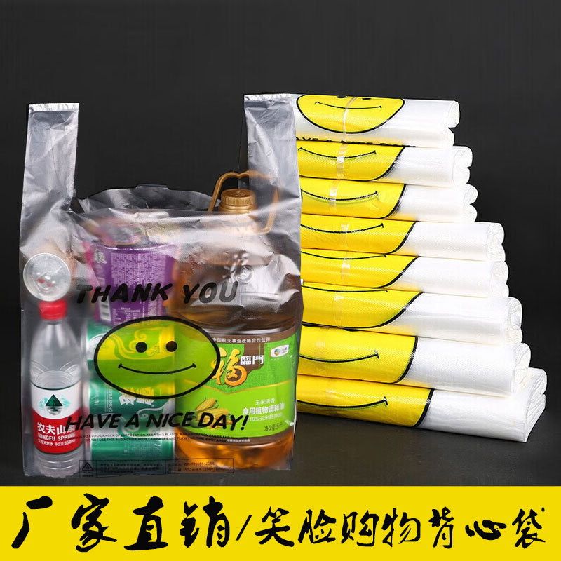 卸売り透明笑顔ビニール袋の出前果物包装レジ袋はプラスチックの手提げベスト包装袋を厚くする