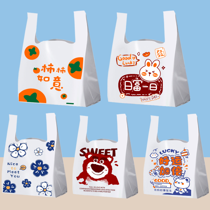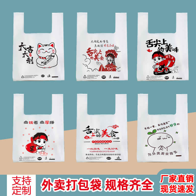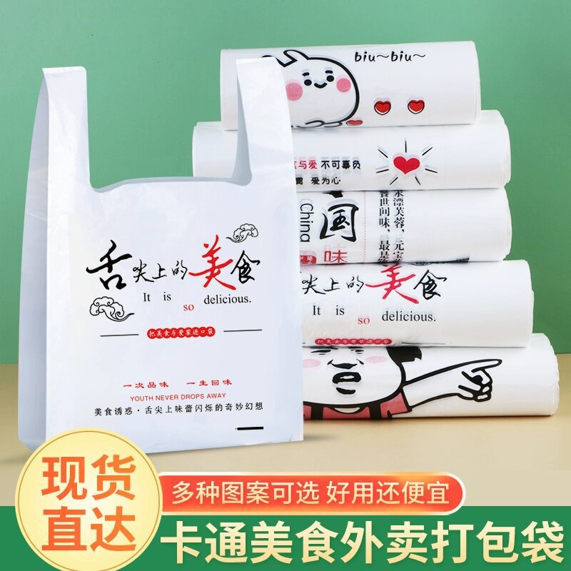 アニメの出前包装袋プラスチック食品袋ネット赤手提げベスト袋卸売り使い捨て包装袋カスタマイズ