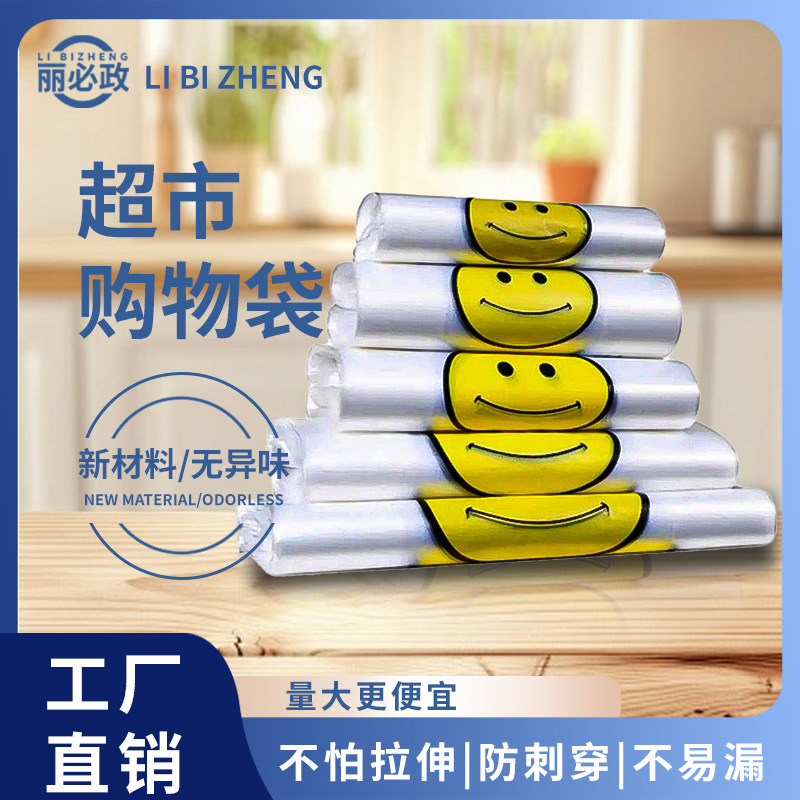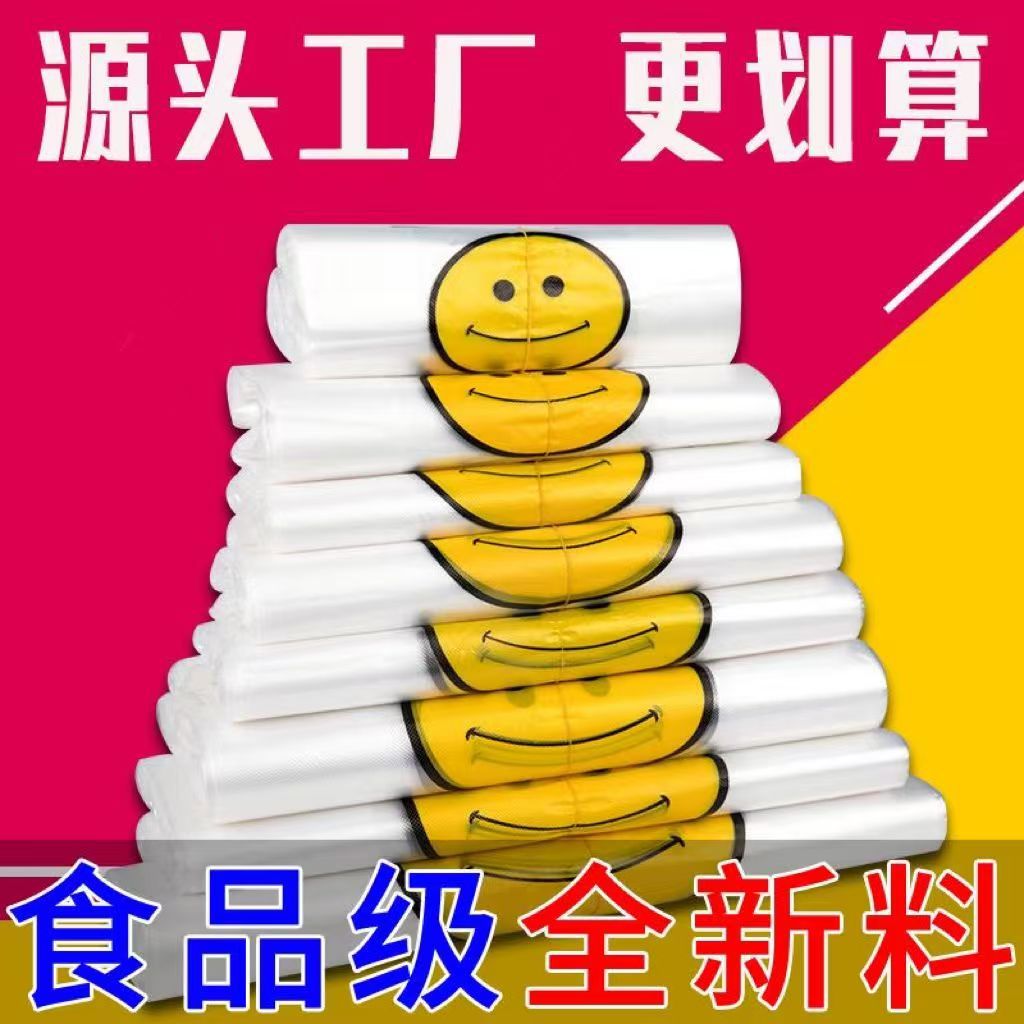 使い捨て透明プラスチック袋赤便利袋スーパーレジ袋果物袋笑顔ベスト袋笑顔袋