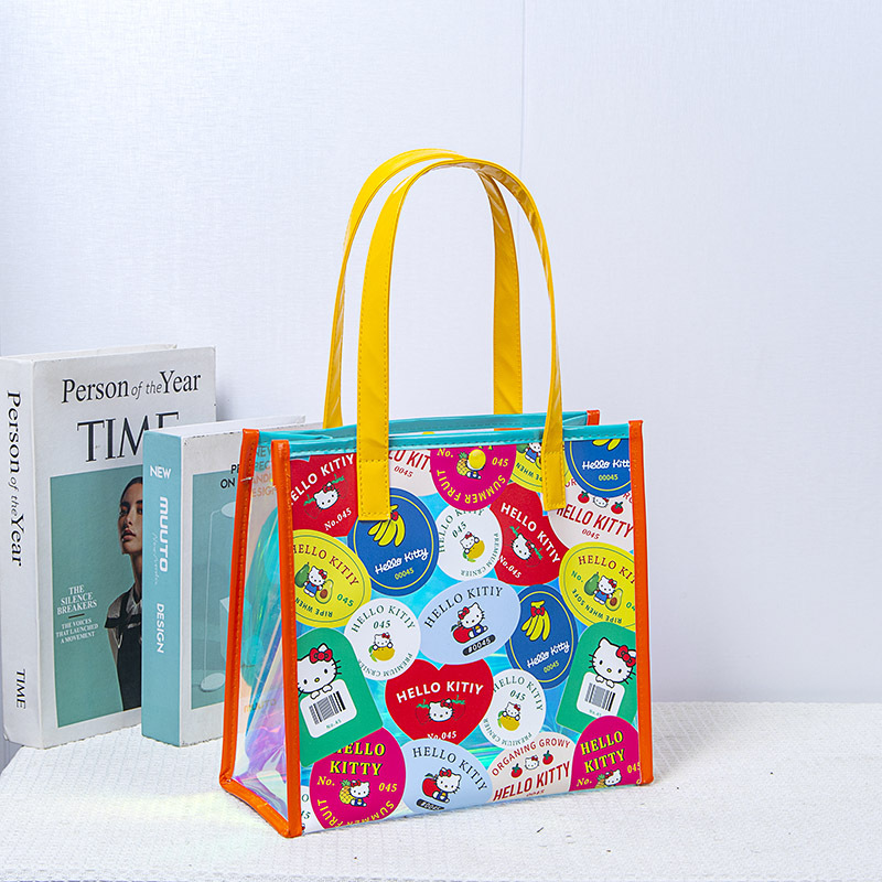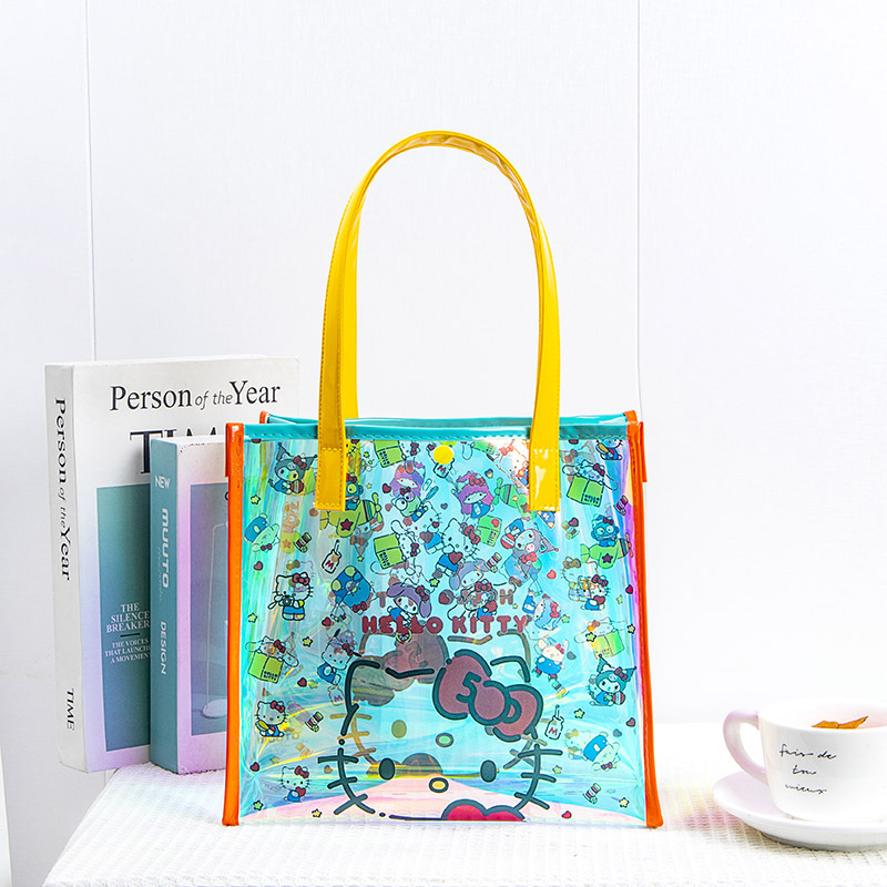 現物KITTYラベル透明レーザーバッグ女性ハンドバッグ高颜値防水ビーチバッグ水泳バッグギフトバッグ