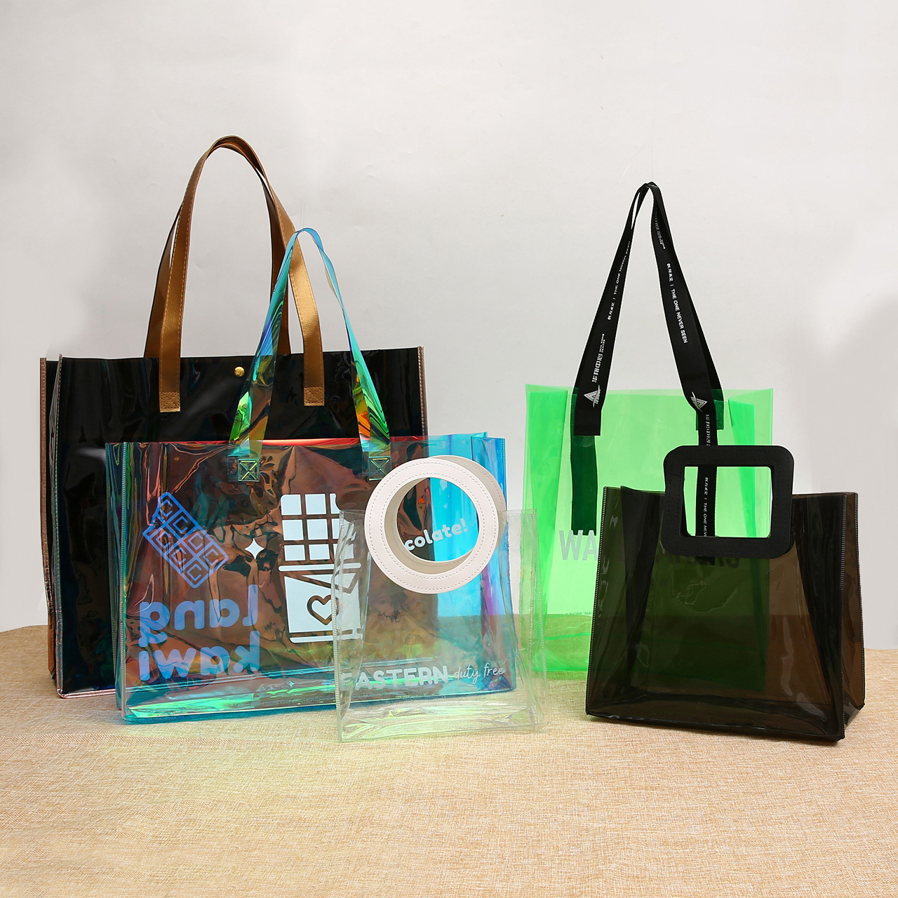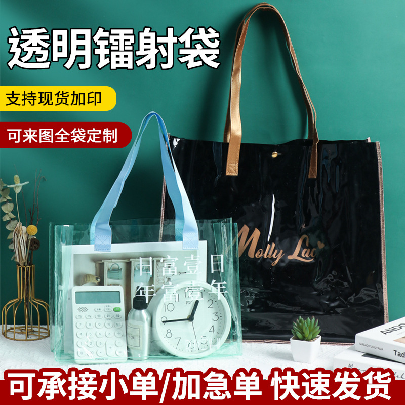 PVCレーザー手提げ袋カスタム広告展示会幻彩透明ギフトレジ袋化粧品包装袋定