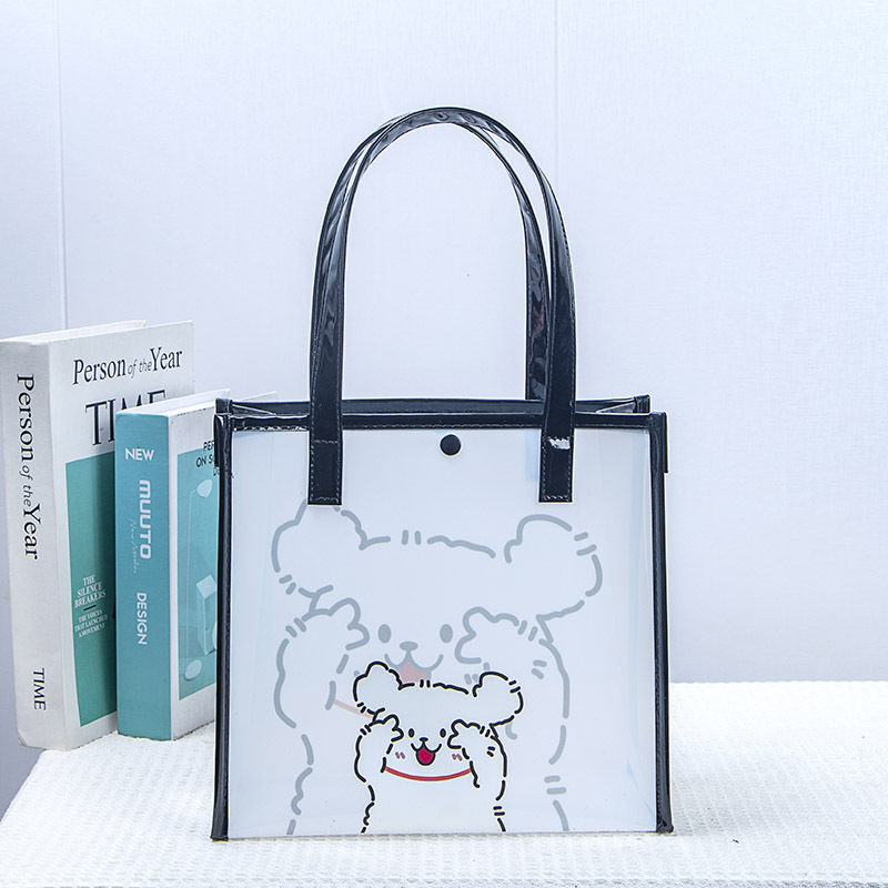 現物黒個性アニメ透明防水手提げギフトバッグ女性シングル肩ゼリーバッグ化粧バッグママバッグ