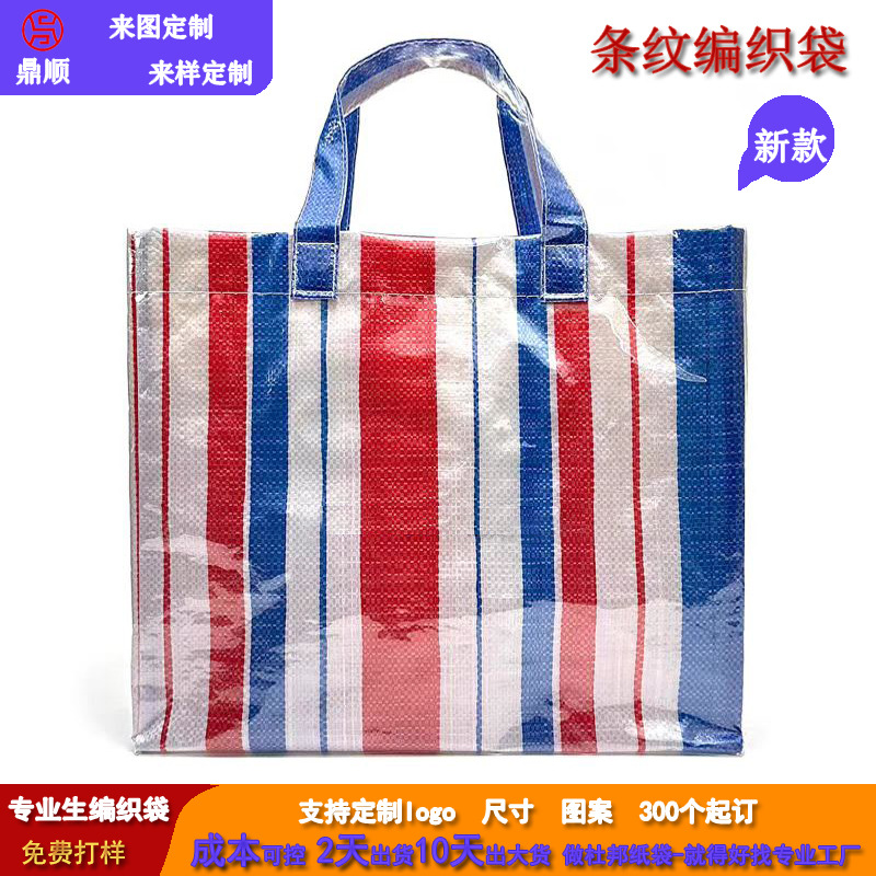 カスタム編み袋展示会ギフトバッグカラーストライプ編み手提げ袋PE編みショッピングバッグシングル肩エコバッグ