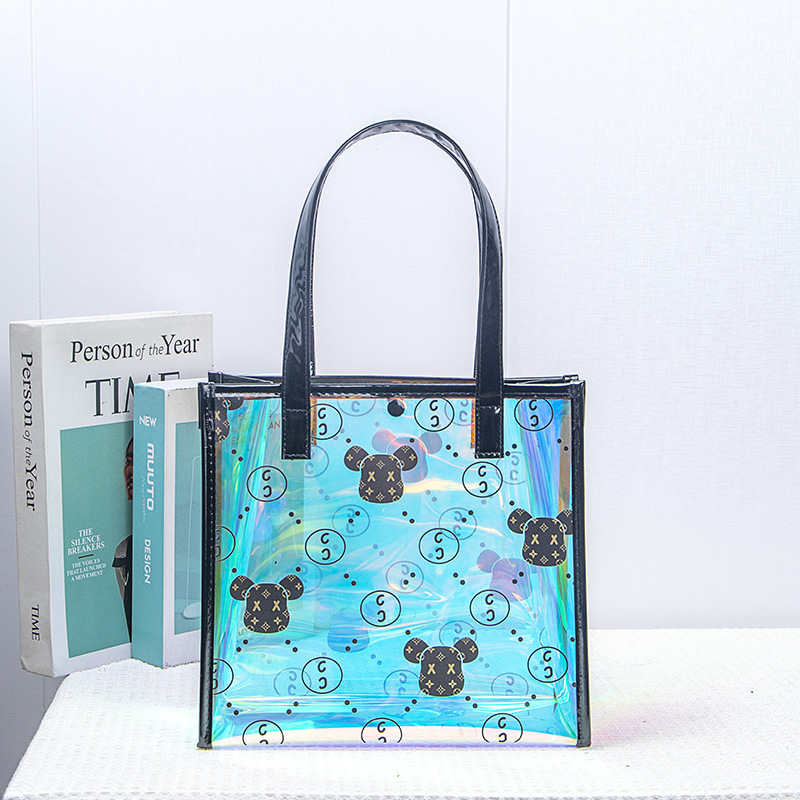 現物熊透明レーザーバッグ女性ハンドバッグ高颜値防水ビーチバッグ水泳バッグギフトバッグ