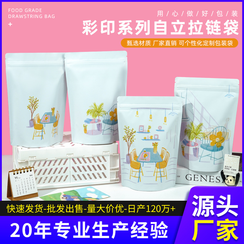 グラビア印刷プラスチック食品級包装自立ファスナー袋防湿湿レジャー食品八辺封袋印刷ロゴ
