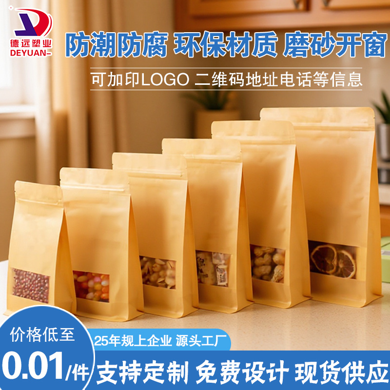 クラフト紙開窓八辺封自立袋雑穀製品自封袋厚密封袋ナッツ食品包装袋