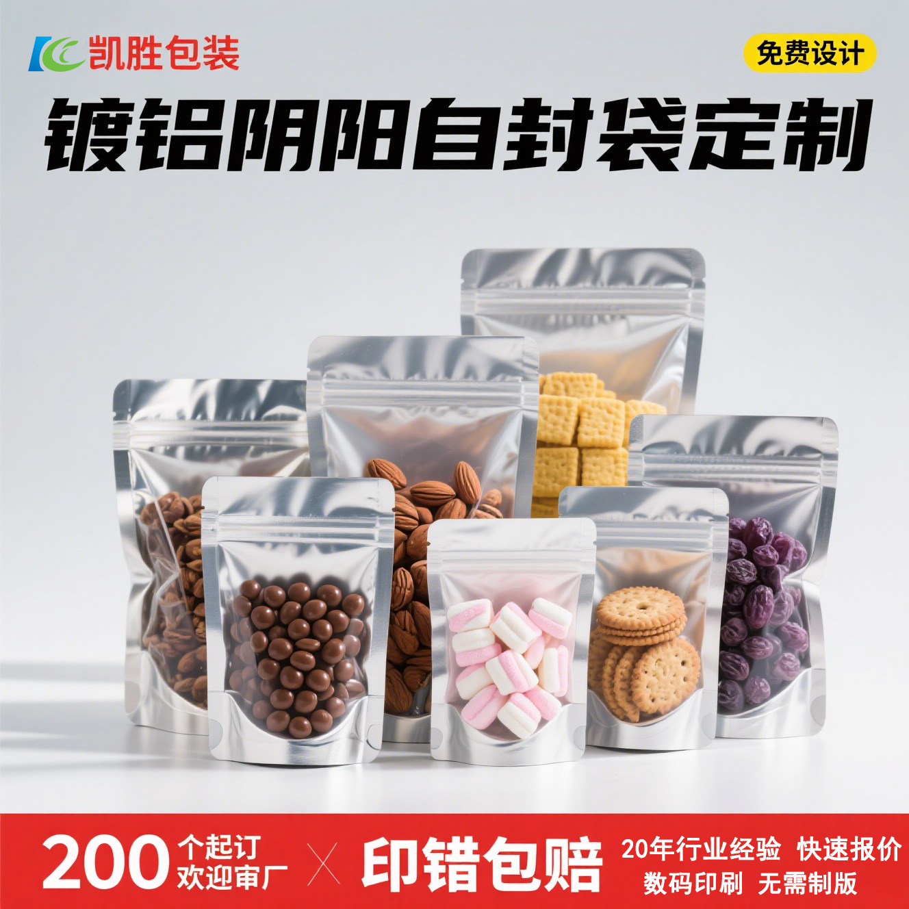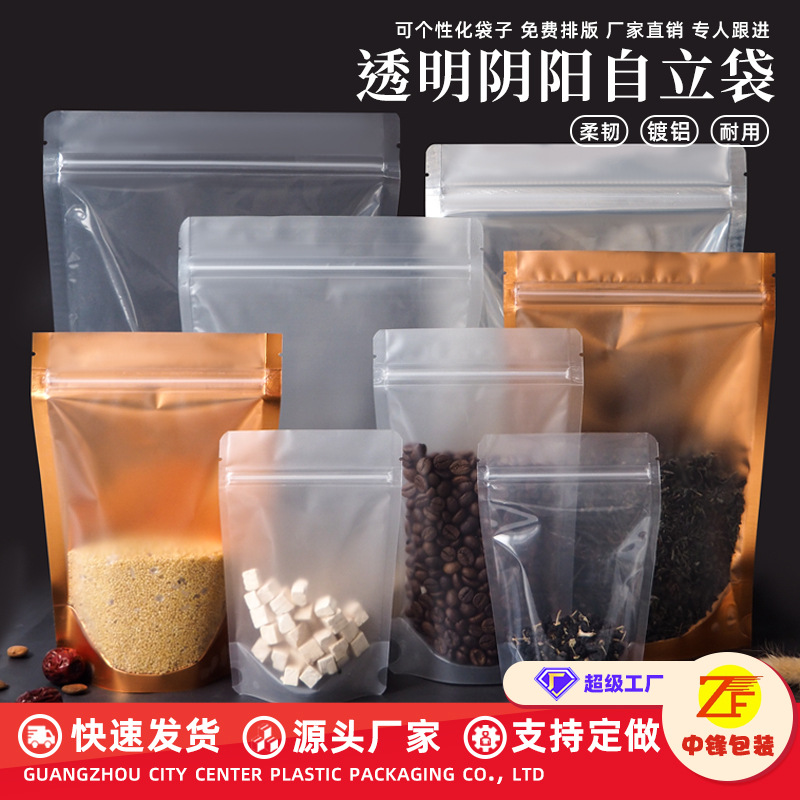 アルミメッキ陰陽自立自封袋定半透明アルミ箔封袋茶葉ナッツ乾燥果プレゼント包装袋