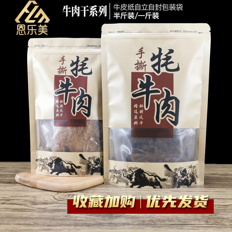 ユニバーサルビーフジャーキー包装袋クラフト紙ジップロック袋 250 グラム 500 グラム手で切れる風乾ヤク肉密封袋