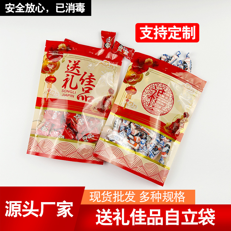 縦型フロスト透明八辺封手提げ自封袋ギフトバッグキャンディー食品包装袋メーカースポット