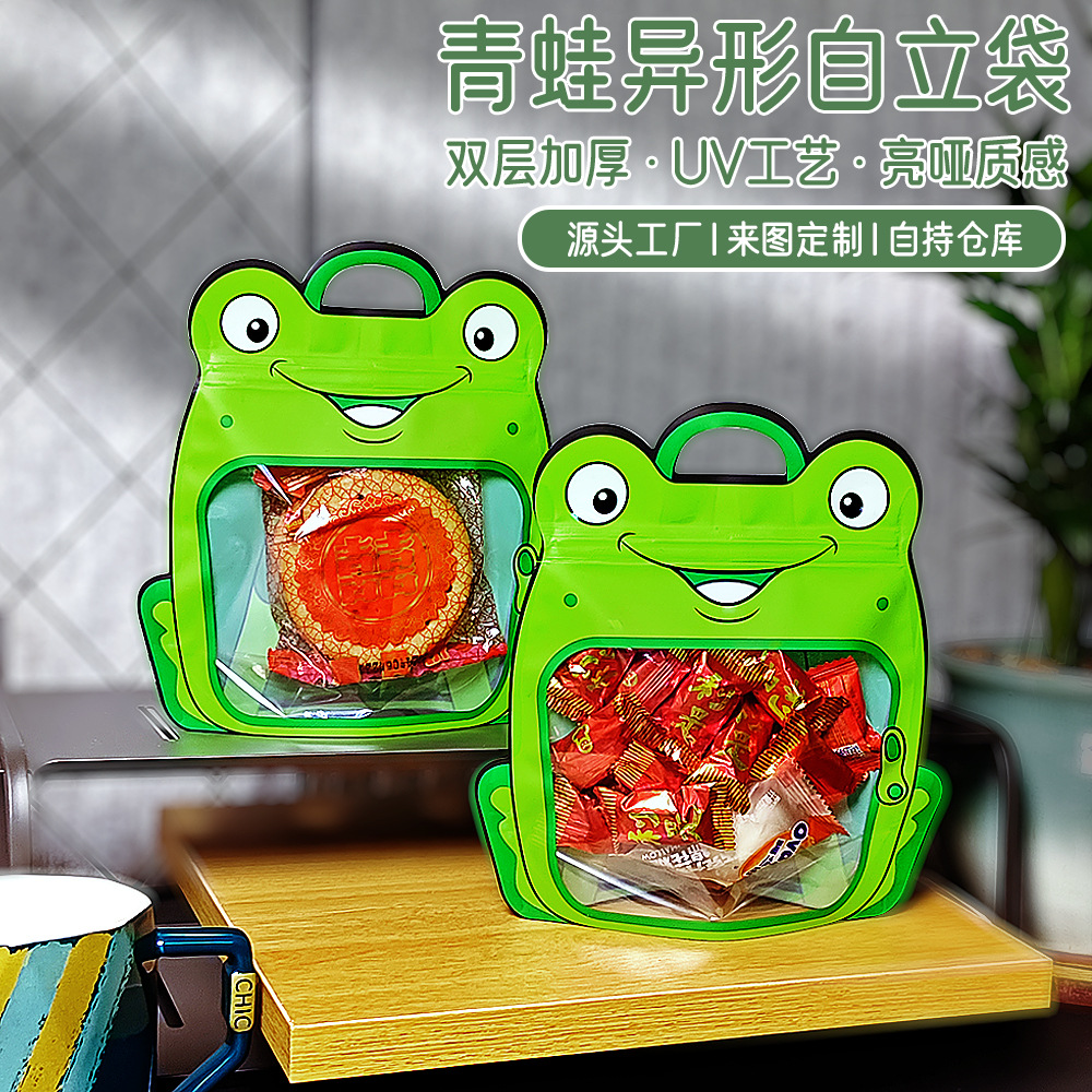 特殊形状密封ポータブル保存袋カエル型プラスチックスタンドアップバッグビスケットキャンディースナック食品包装袋
